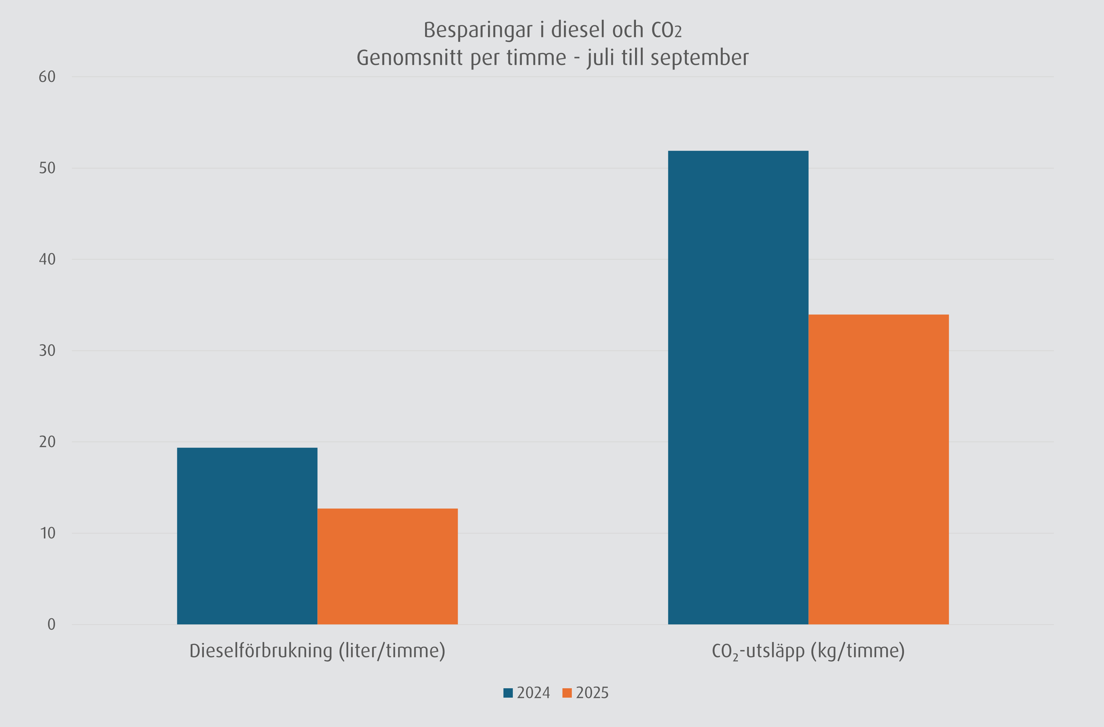 De två nya Konecranes reachstackers anlände till Taulov Kombiterminal i maj 2025. Miljövinsterna har snabbt visat sig i praktiken genom data från det inbyggda Truconnect-systemet. Maskinerna sparar i genomsnitt 6,7 liter diesel per timme, vilket motsvarar 18,0 kg CO₂ mindre per maskin och timme. Jämfört med tidigare lösningar motsvarar detta en besparing på 34,4 % diesel och 34,6 % CO₂.